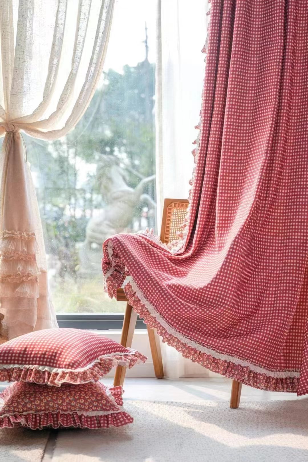 Be the first to review “2023 American Style Pastoral Pink Checkered Cotton Linen Printed Curtains P-023”