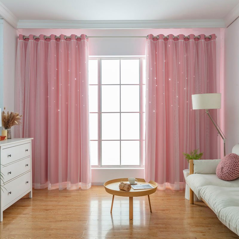 Hot sales hollow star kids room window draps high density blackout double layer curtain for the living room home decor